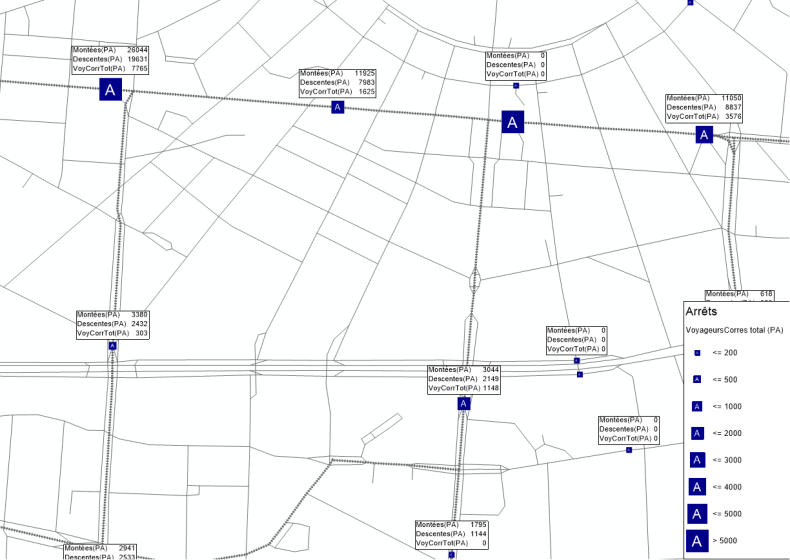 Illustration 257 : Représentation de montées, de voyageurs en correspondance et de descentes aux arrêts sous forme de table