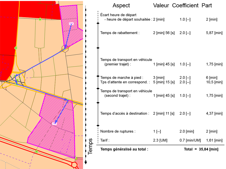 Illustration 64 : Calcul du temps généralisé pour une liaison TC, représenté dans l’unité de temps [min]
