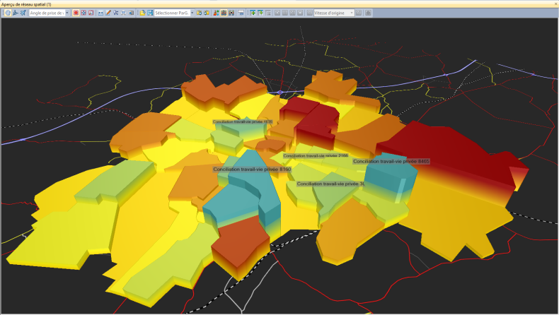 Vous pouvez insérer des panneaux d’information dans l’aperçu de réseau spatial, qui sont assignés à des éléments de réseau et affichent des informations les concernant. Les panneaux d’information peuvent par exemple contenir des valeurs d’attribut ou des textes libres.