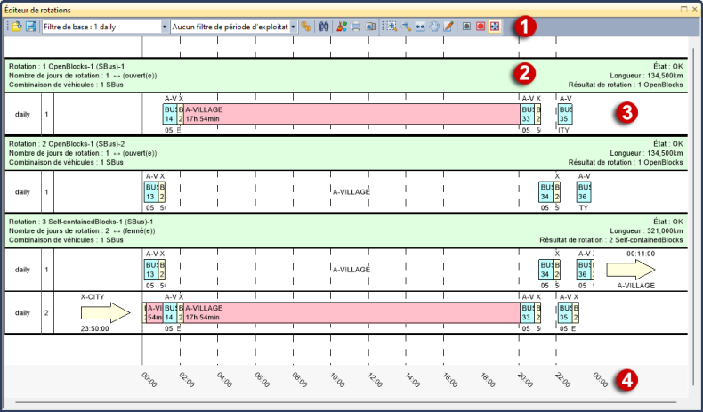 (1) Barre d’outils de l’éditeur de rotations
