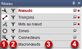 Cette icône vous permet de masquer et d’afficher le type d’élément respectif dans le réseau (Modifier l’affichage et l’ordre des couches graphiques).