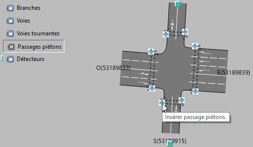 3. Insérez un passage piéton en cliquant sur la case Insérer passage piétons de votre choix portant le signe +.