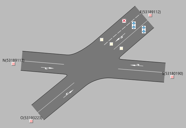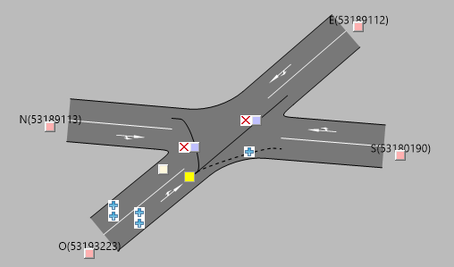 Nota : Vous pouvez supprimer un passage piétons en cliquant sur la case Supprimer passage piétons portant le signe x. Lorsque vous insérez une ISL, tous les passages piétons sont automatiquement insérés au nœud ou au macronœud sélectionné s’il n’en existe pas encore. |