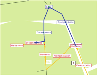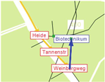 Dans l’exemple, il s’agit de rediriger la section Heidering > Dreizahnstraße.
