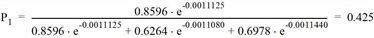 Für Route 1 berechnet sich der Anteil unter Verwendung des Logit-Modells wie folgt.