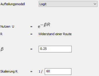 Abbildung 91: Parametrierung des Logit-Aufteilungsmodells