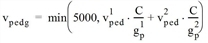 Hier ist vpedg die Fußgänger-Flussrate, v1pedg und v2pedg die Fußgänger-Belastungen der Furten, C die Umlaufzeit der LSA und g1p und g2p die Gründauer für die Fußgänger.