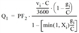 Hier ist vbicg die Radfahrer-Flussrate, vbic die Radfahrer-Belastung, C die Umlaufzeit der LSA, g die effektive Grünzeit der Fahrstreifengruppe und OCCbicg der Besetzungsgrad des Konfliktbereichs durch Radfahrer.