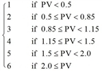Diese Größe misst den „Abstand“ eines Belastungsprofils von einer Gleichverteilung. Der Wert variiert von 0 (Gleichverteilung) bis 2 (für einen ausgeprägten Pulk). Ein hoher Wert bedeutet, dass sich Koordinierung an diesem Knoten lohnt, weil die Fahrzeugankünfte auf einen Teil der Umlaufzeit konzentriert sind, sodass eine Chance besteht, durch Änderung der Versatzzeit die Grünzeit dorthin zu verschieben.