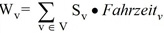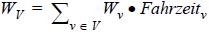Die erwarteten Steherminuten einer Verbindung V entsprechen dem belastungsabhängigen Widerstand und ergeben sich durch Aufsummieren des Produkts aus Steherwahrscheinlichkeit und Fahrzeit über alle Fahrtplanfahrtelemente der Verbindung: