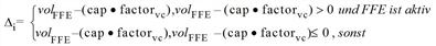 Für die Berechnung wird zunächst für jedes Fahrplanfahrtelement (FFE) i die Differenz aus Belastung des FFE und der Kapazität (cap) wie folgt ermittelt