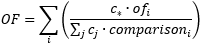 Als Zielfunktion (OF) wird die folgende Funktion verwendet, die auf dem Vergleich zwischen den ermittelten und geschätzten Werten für jede der Zielfunktionskomponenten basiert: