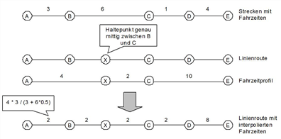 Abbildung 216: Interpolation von Durchfahrzeiten (Fahrzeiten in Minuten)