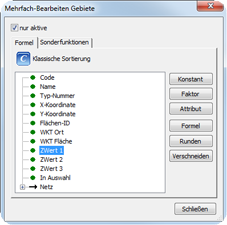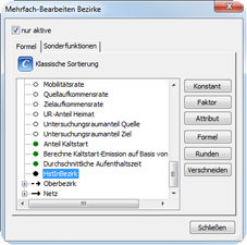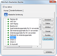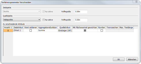 - Als Zielobjekt, das später die erzeugten Informationen aufnehmen soll, wird der Bezirk und als Zielattribut ein editierbares Attribut des Bezirks ausgewählt.