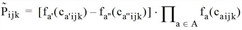 Hierbei steht Mijk für die Modusverfügbarkeit des Modus k auf der Beziehung (i,j) und Cijk für die Kapazitätsauslastung des Modus k auf (i,j). a‘, a‘‘ und a‘‘‘ sind die vordefinierten Aufwandsarten Reisezeit, konkurrierende Fußwegzeit und externe Bewertungsmatrix, A entspricht der Menge der vom Benutzer definierten Aufwandsarten.