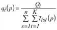 Dabei sind Tij die Zahl der Ortsveränderungen von i nach j, Wij eine Funktion der Kosten für die Fahrt von i nach j, Qi das Quellaufkommen von Bezirk i und Zj das Zielaufkommen von Bezirk j. Die Faktoren fqi, fzj werden so berechnet, dass die Quell-/Zielaufkommen als Randsummen eingehalten werden.