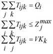 Hier bezeichnet der Index k den Modus (Verkehrsmittel) und Wijk bewertet die Kosten der Fahrt von i nach j mit Modus k. Für jede Nachfrageschicht c existiert ein eigenes Gleichungssystem, das separat gelöst wird. Der Übersichtlichkeit ist der Index c in den Problemformulierungen oben bei allen Variablen weggelassen.