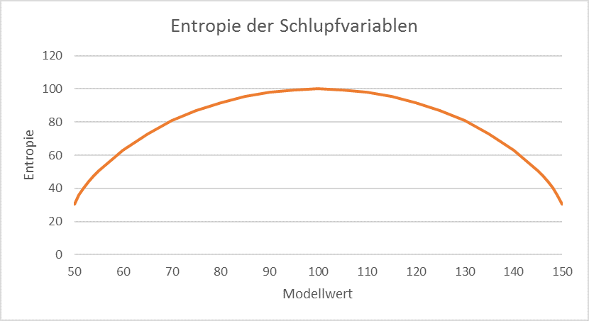 Veranschaulicht man die Entropie der Schlupfvariablen anhand eines Beispiels, kann man die Ähnlichkeit zu den Fuzzy-Mengen erkennen.