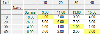Die Matrixwerte folgender Matrix werden aggregiert.