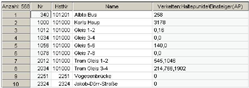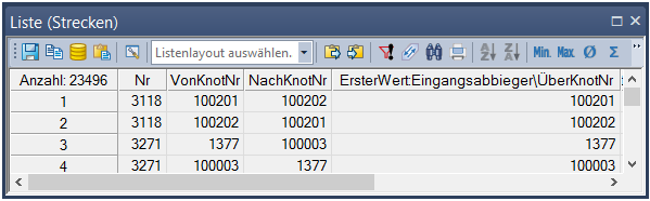 Darstellung des indirekten Attributs in der Liste neben direkten Attributen der Strecke |
