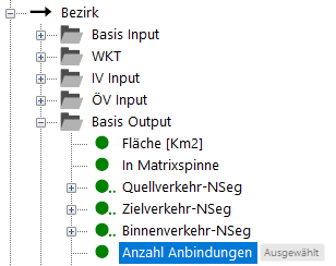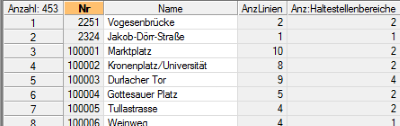 Ermittelt die Anzahl der in Beziehung stehenden Netzobjekte. In Tabelle 17 wird die Anzahl der zu einer Haltestelle gehörenden Haltestellenbereiche bestimmt.