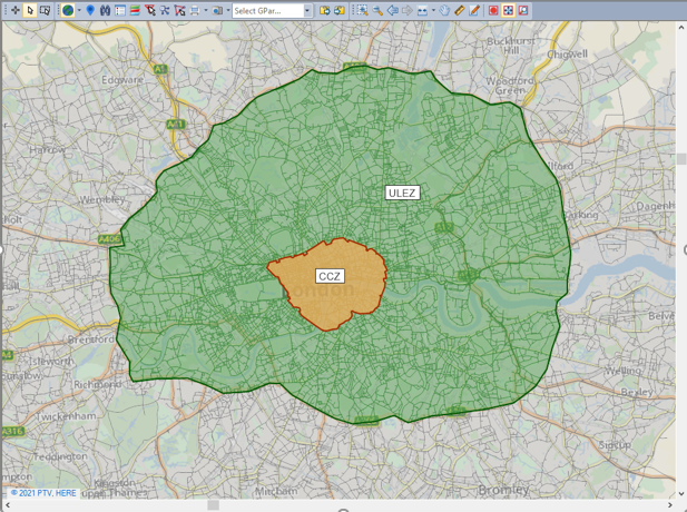 Abbildung 29: Congestion Charging Zone und Ultra Low Emission Zone in London als Beispiel einer Flächenmaut