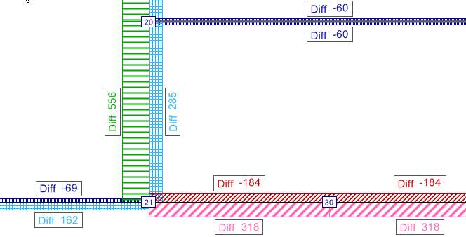 Die Differenzwerte werden im Netzeditorfenster gemäß den Einstellungen als Balken dargestellt.
