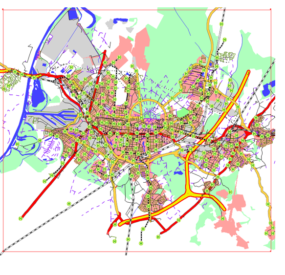 Der Druckbereich wird in der Netzdarstellung durch ein Rechteck angezeigt.