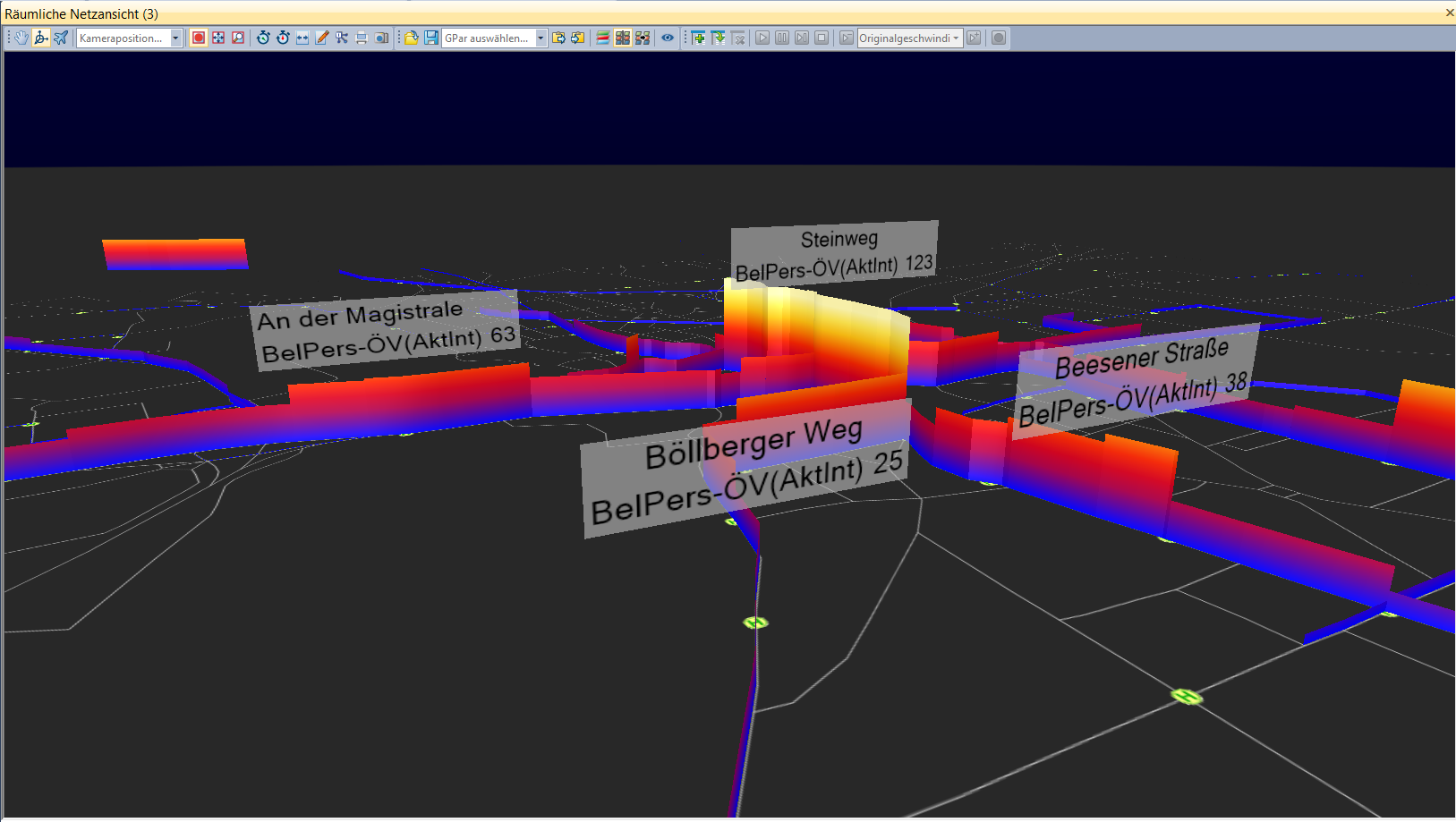 Info-Tafeln können in der räumlichen Netzansicht angezeigt werden und auch während des Ablaufs eines Storyboards dynamisch ein- und ausgeblendet werden.
