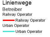 Die dargestellten Objekte der gewählten Aggregationsebene können nach einem Attribut gruppiert werden. Sie können beispielsweise Betreiber als Linienwege darstellen und die Betreiber in zwei Gruppen einteilen.