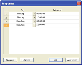 Ende des Umlegungszeitraums Hinweis Wenn Sie einen Kalender verwenden, müssen Sie einen Wochentag oder ein Datum wählen (Kalender und Verkehrstage einstellen). |