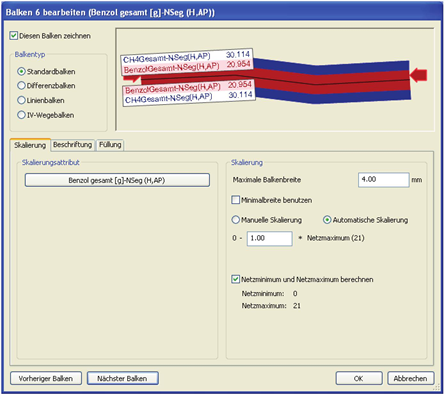 5. Nehmen Sie die gewünschten Einstellungen für die Balken vor (Darstellung eines Standardbalkens festlegen).