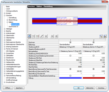 2.  Wählen Sie im Navigator den Eintrag Strecken > Balken > Darstellung.