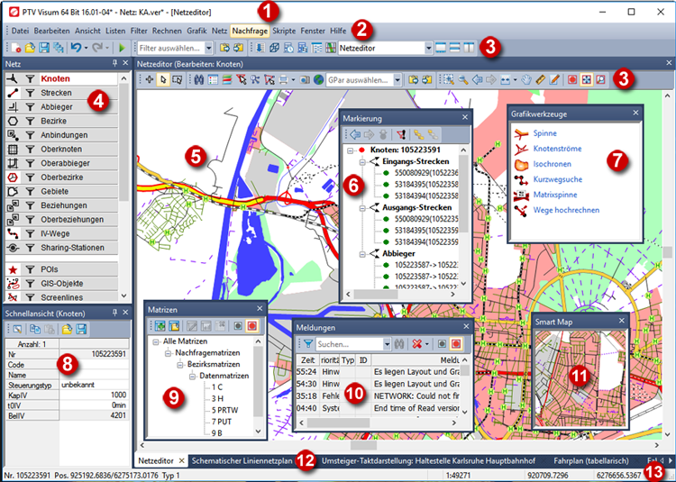 • Informationen zum markierten Netzobjekt, wenn ein Netzobjekt markiert ist