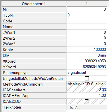Der Oberknotentyp dient zur Kategorisierung des Oberknotens (0...99) für die Definition von Abbiegerstandards (Abbieger verwalten).