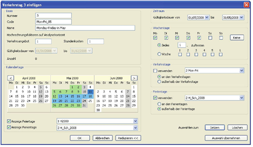 - Verkehrstage und Fahrplan-Saison (gleiche Auswahl wie ein bestehender Verkehrstag)