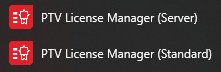 Die folgenden Symbole kennzeichnen die verschiedenen Varianten des PTV License Manager im Windows-Startmenü außerhalb der Programmgruppe PTV Vision (Lizenzen mit PTV License Manager verwalten):