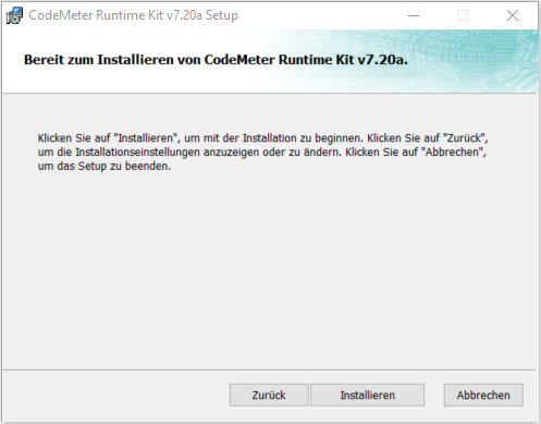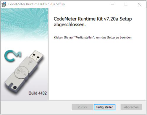 Nach der Installation des License Managers öffnet sich das Fenster CodeMeter Runtime Kit <Versionsnummer> Setup.