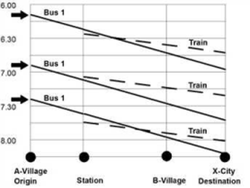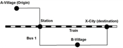 The different procedures are described below using an example (Illustration 152, Illustration 153, Illustration 154, Table 159 and Table 160). Find the connections between A-Village and X-City on the basis of the example's PuT supply.