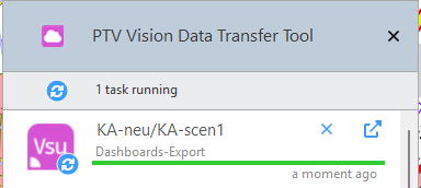 symbol. You can open the tool's interface while uploading the data to PTV Hub to check the progress and success of the upload. The interface of the tool does not open automatically.